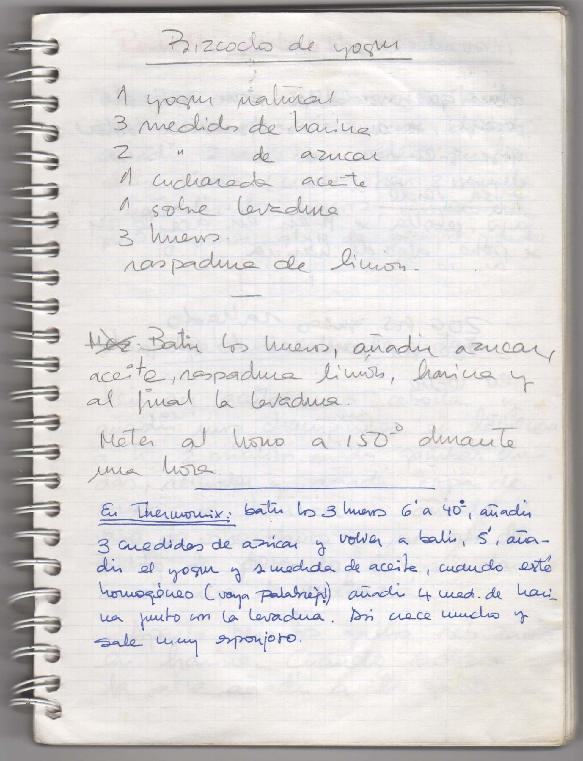 Esta receta es de las primera de mi cuaderno manuscrito: “batir huevos con azúcar, añadir aceite y ralladura; la levadura al final; al horno a 150 °C una hora”. Con el tiempo añadí la variante Thermomix, que en casa se volvió costumbre porque sube mucho y queda muy esponjoso. En esta hornada la cocinera fue Luchi y los catadores, sus peques, Claudia, Toti y Samti: no esperaron a que enfriara para llevarse las primeras migas, la foto da fe de ello 😀.