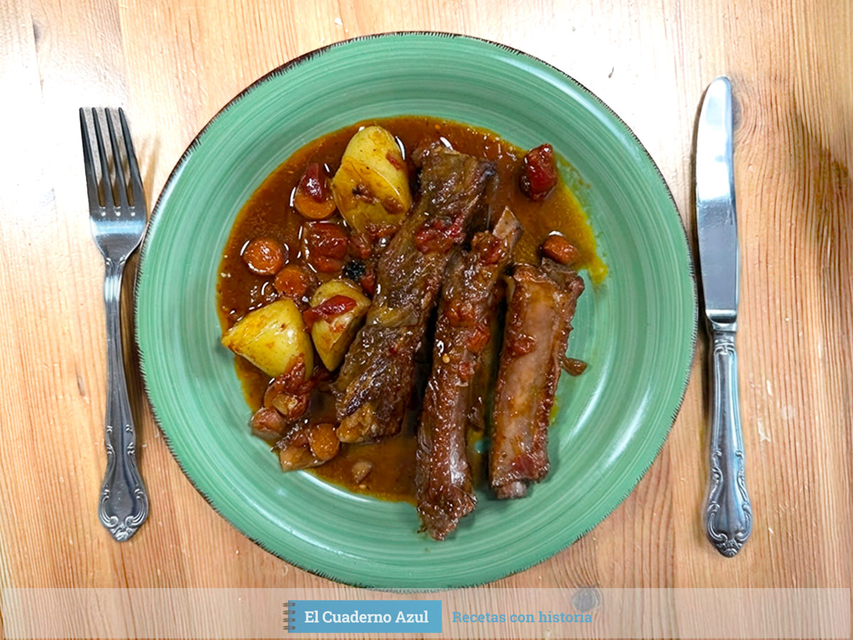 Un origen humilde Las costillas de cerdo no siempre fueron un manjar de fin de semana. Históricamente, en la matanza, eran piezas que se consumían pronto o se adobaban para conservar, consideradas cortes "menores" frente a los lomos o jamones. Su unión con la patata es el matrimonio perfecto de la necesidad: la patata, que llegó de América y tardó siglos en convencer a los europeos, se convirtió en el s.XIX en la base de la alimentación popular. Este guiso es hijo de esa cocina rural de aprovechamiento, donde un poco de carne debía dar sabor a muchas patatas para alimentar a toda la familia.