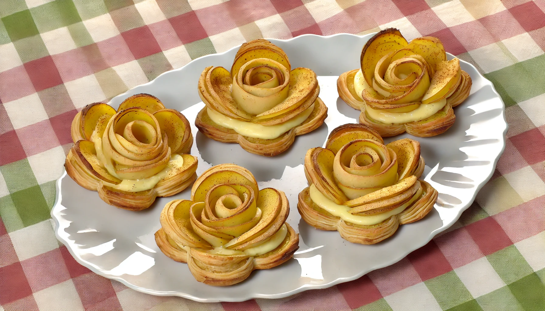 ¡Disfruta de estas deliciosas flores de manzana al horno con crema pastelera!