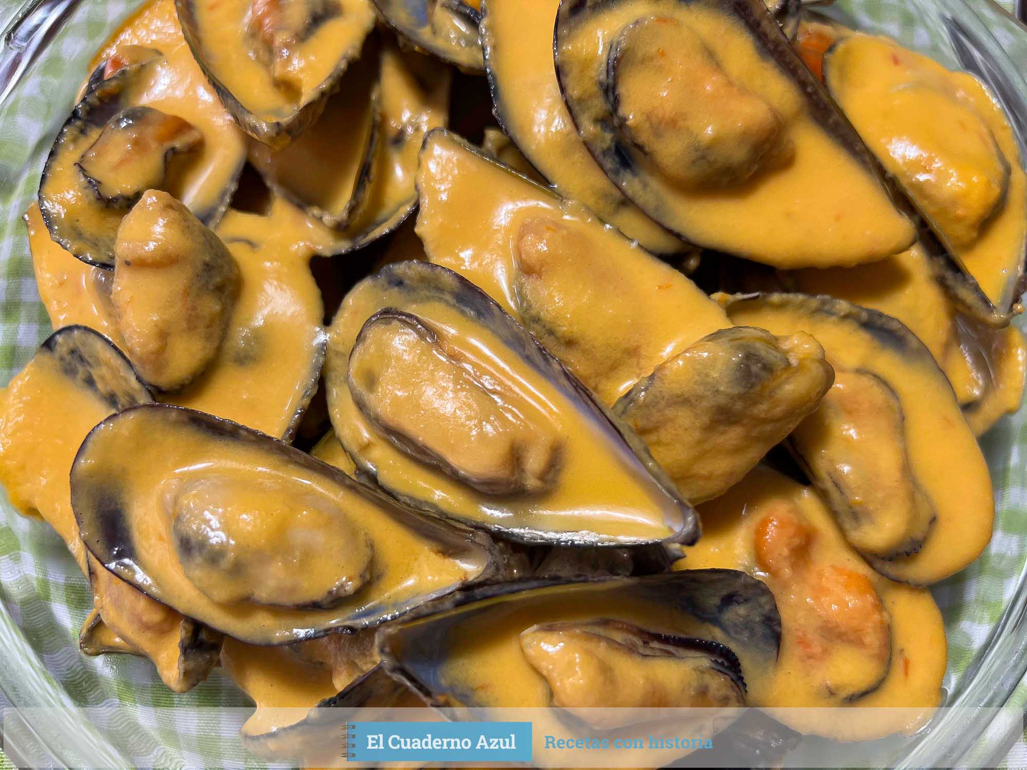 - Sirve los mejillones en platos hondos, vertiendo la salsa de tomate picante por encima.