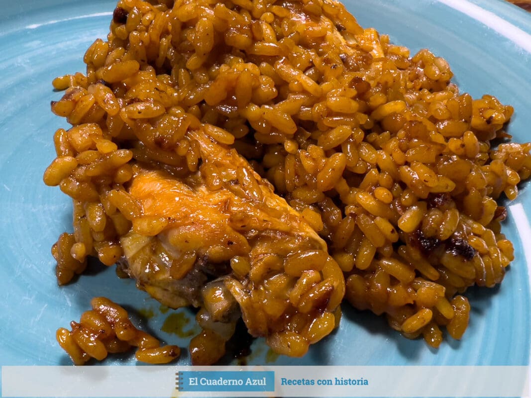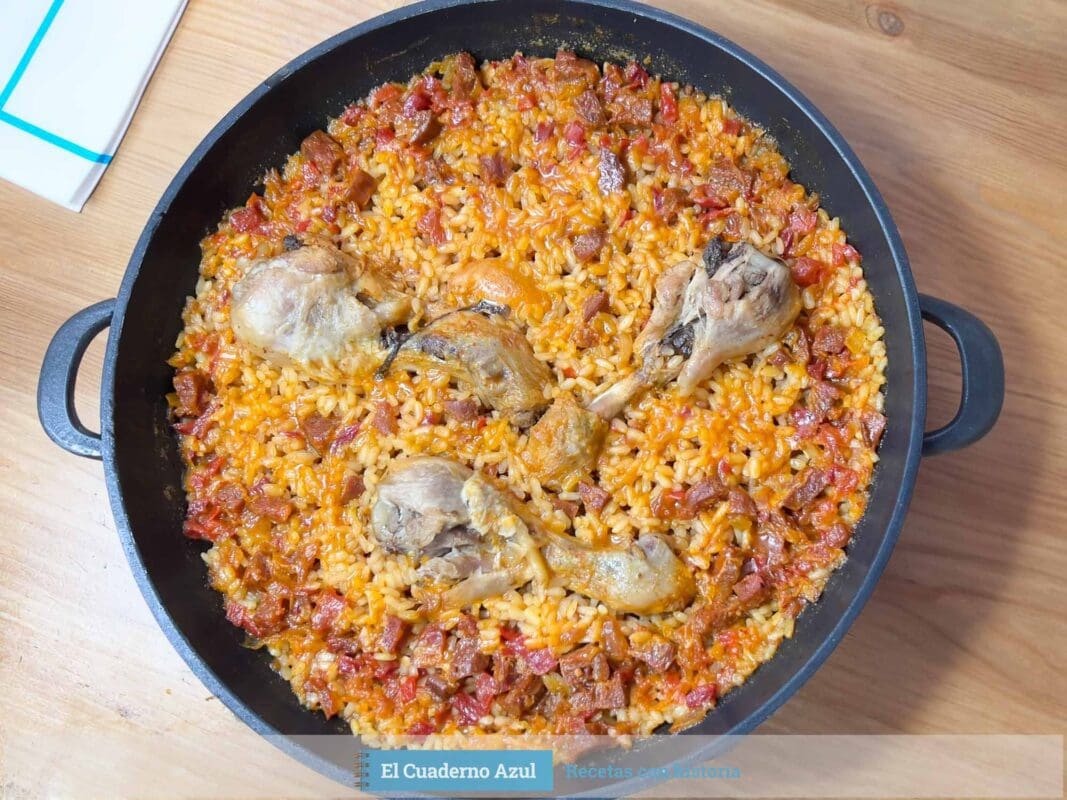 Arroz con muslos de pollo y chorizo.