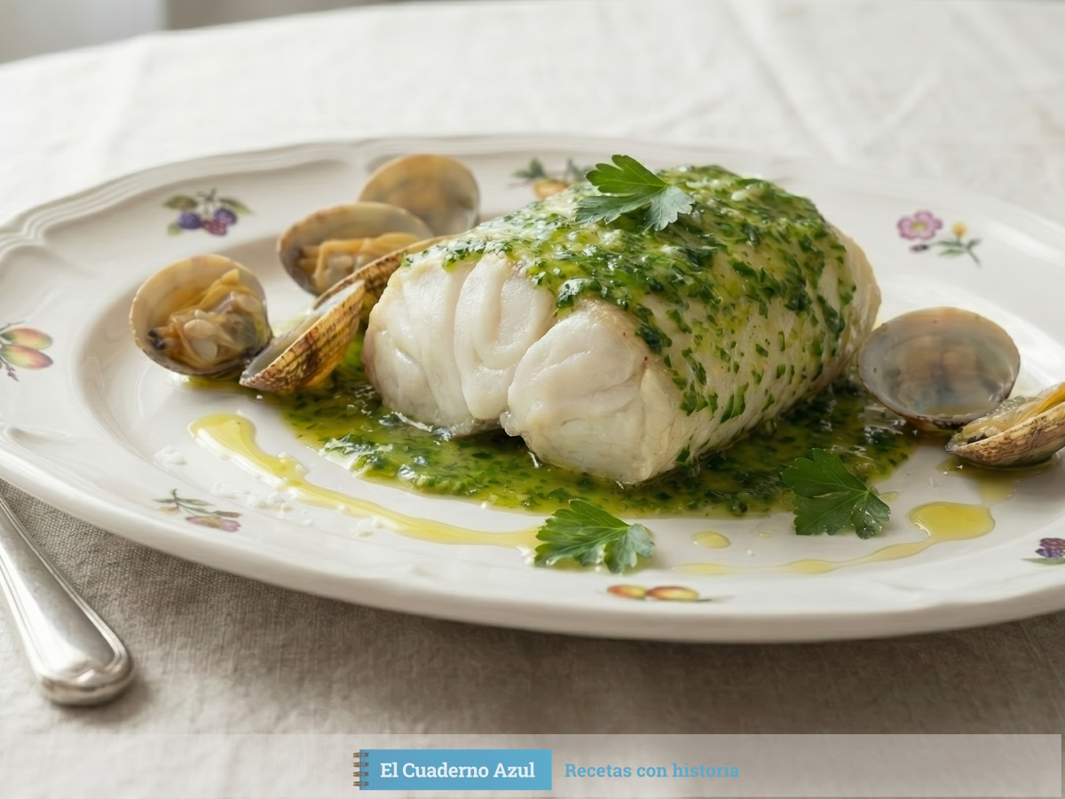 Merluza en Salsa Verde con Almejas: Elegancia vasca en tu mesa.