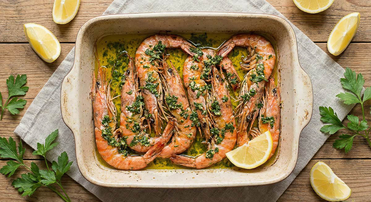 Olvídate de los olores y el humo de la plancha. Estos gambones se hacen solos en el horno y quedan igual de jugosos.