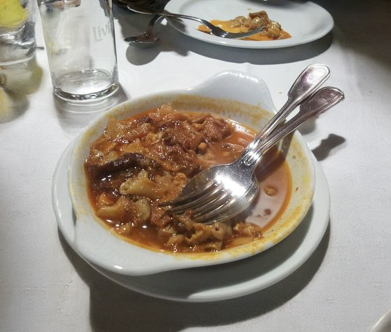 - Callos estilo Oviedo: Los callos fueron el plato más contundente que pedimos. Estaban bien cocinados, con una salsa rica y espesa, aunque algunos de nosotros los encontramos un poco pesados. Sin embargo, es un buen plato para quienes disfrutan de los sabores tradicionales y potentes.