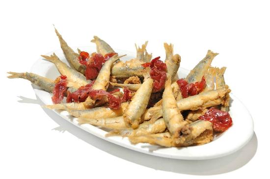 - Bocartes fritos con jamón: Este plato fue uno de los favoritos. Los bocartes estaban bien fritos, crujientes por fuera y jugosos por dentro. El jamón añadía un toque salado y un sabor extra que complementaba perfectamente el pescado.