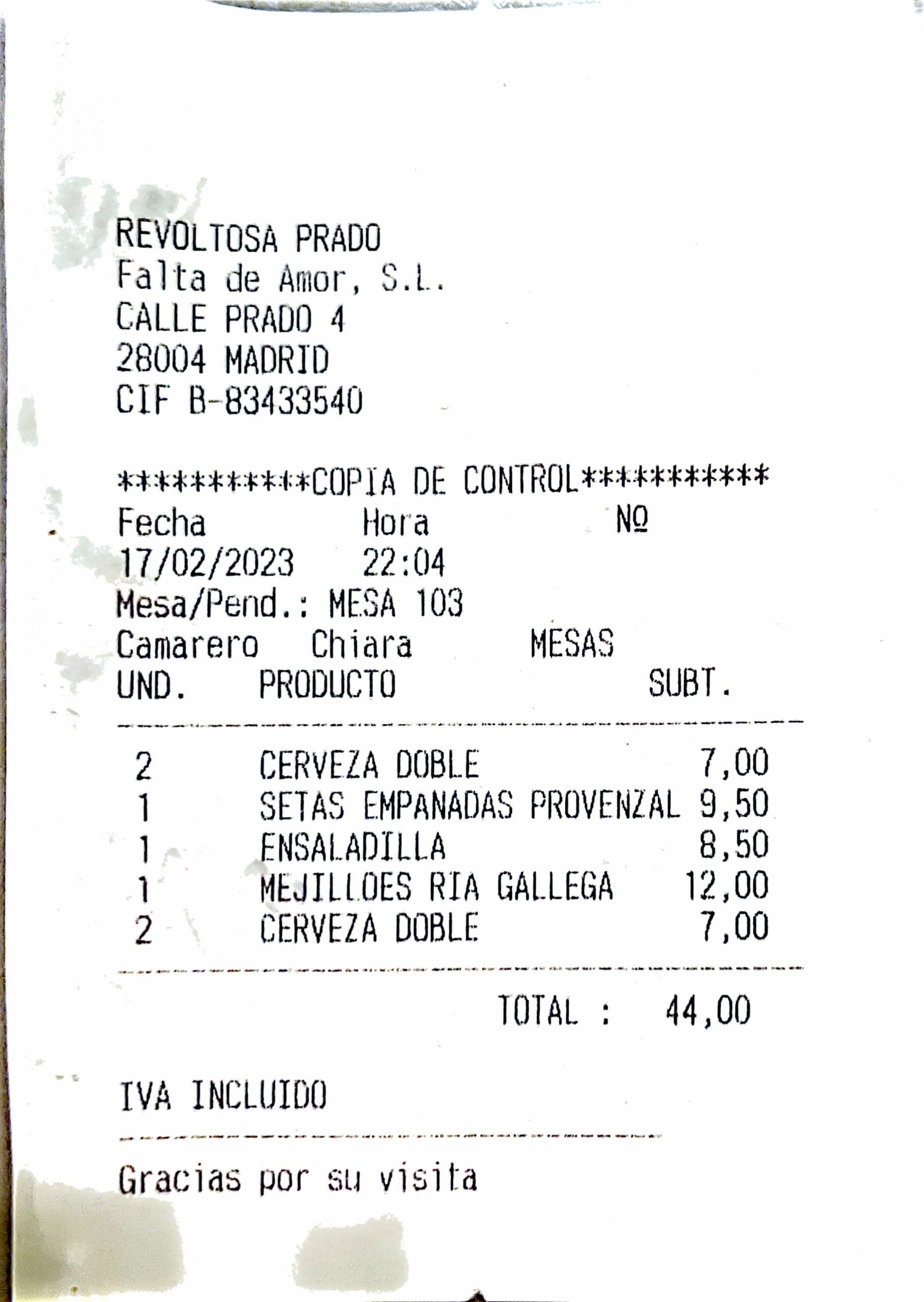 Los precios en Revoltosa Prado son razonables, especialmente teniendo en cuenta la calidad de la comida y la ubicación céntrica. Aunque no es el lugar más económico de Madrid, ofrece una buena relación calidad-precio.