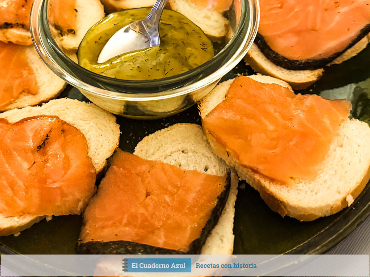 La primera vez que hicimos estas tostas de salmón marinado con salsa de eneldo nos enamoró el olor a eneldo y limón que quedaba en la cocina. Desde entonces, cuando hay reunión familiar preparo el gravlax la noche anterior y dejo la salsa lista; el día de la comida solo tuesto el pan y monto las tostas en un momento. Siempre hay alguien que se queda al lado del cuenco, “por si hace falta repasar” otra tosta.