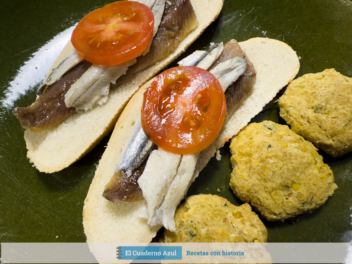 Una combinación ideal de sabores marinos y textura crujiente, perfecta como aperitivo o entrante. Las anchoas, los boquerones y el tomate se combinan con unas suaves tortitas de garbanzo que aportan cuerpo y originalidad al plato. Se prepara con calma y se disfruta caliente.